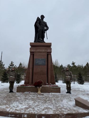 24 декабря 2025 года факультетом сухопутных войск и военнослужащими срочной воинской службы Национального университета обороны Республики Казахстан провели церемонию возложения цветов к памятнику прославленного батыра в честь 115-летия Героя Советского Союза, Народного героя, прославленного полководца, стратега и военного писателя Бауыржана Момышулы.